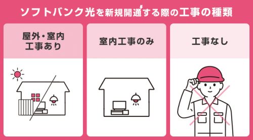 ソフトバンク光を新しく開通する場合、工事は大きく分けて以下の3種類があります。