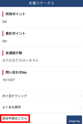 ポイントエニタイムは以下の手順で退会・解約できます。