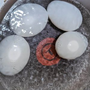 沸騰したお湯に冷蔵庫から出したばかりのたまごを4個入れます。