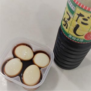 たまごを茹でて殻をむいて、大量のめんつゆに漬け込んで…