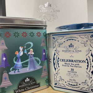 左(白地に青い文字の缶):ホリデーシリーズの「CELEBRATION」です。紅茶をベースに、アプリコットやヘーゼルナッツ、ほんのりシナモンの香りをブレンドをしたものです。こちらはお花のように甘く、華やかな香りが特徴的です。こちらも「White Christmas」同様、甘いお菓子と相性がよさそうです♪