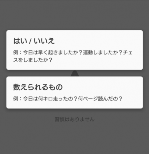 「〇〇をしたか、していないか」のような【はい/いいえ】で答えられるもの、もしくは「〇〇キロ走った、〇〇ページまで読んだ」のような【数えられるもの】から選ぶことができます。
