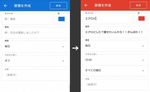 習慣の種類を選択したら、いよいよ具体的に習慣目標を設定していきます。「タイトル」に習慣化したいものの名前を入力。