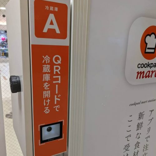 マートステーションは商品購入者しか開くことのできない冷蔵庫なので、スマホアプリに表示されたQRコードをカメラにかざし扉を開けます。