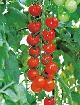 ●栽培しやすく、メガネが少ない 草勢は中強で「ココ」よりおとなしく、異常主茎(メガネ)の発生が少なくて栽培容易。節間長は中位(「ココ」よりは幾分長い)で長段栽培に向く。花数は1花房当たり30~40花で、低段ではやや少ない。果房整理の必要が無い省力型品種で、自家菜園用にも最適。
