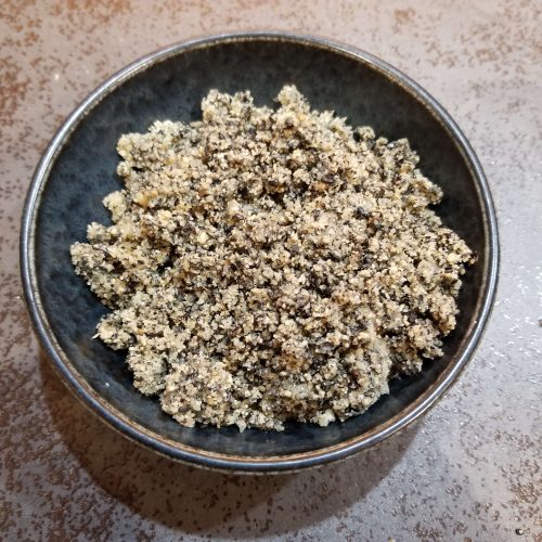 こちらの割合ですべての食材をミキサーにかけてペーストにするだけ!!黒ゴマは、すでにすりゴマになっているタイプのものを買うと楽ちんです♪