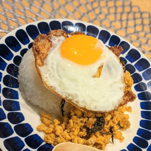 お皿にご飯とガパオを盛りつけたら仕上げに目玉焼きを作ります。