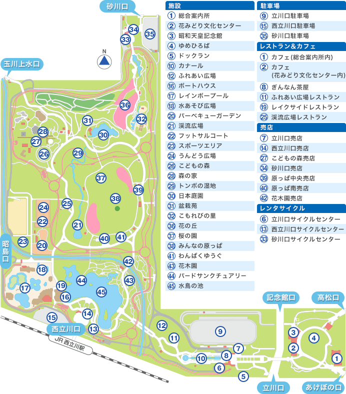 こちらの公園は「昭和天皇御在位五十年記念事業」の一環として、立川飛行場跡地に建設された総面積180haにおよぶ国営公園です。