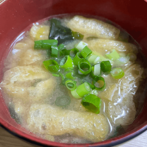 ↑お味噌汁(ネギ、油揚げ、わかめ、豆腐)