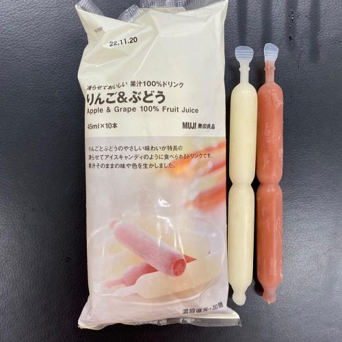 4品目は無印良品で購入した「果汁100%ドリンク りんご&ぶどう」です。