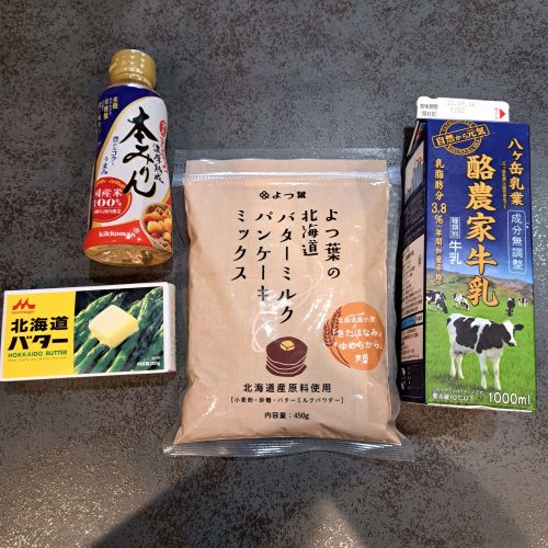 まずは材料を用意!ホットケーキミックスはお好みのものを使用してください😊