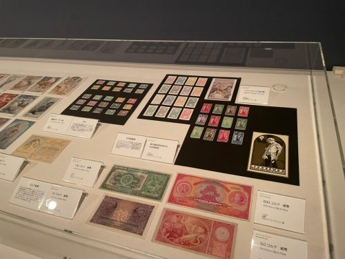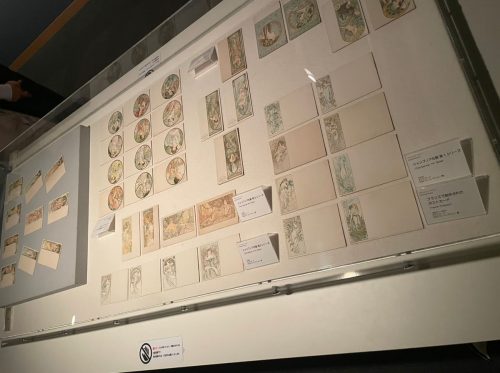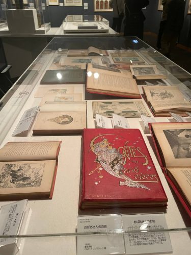 本の挿絵やお菓子の缶のデザイン、お皿、切手、ポストカードなども数多く展示されていました。