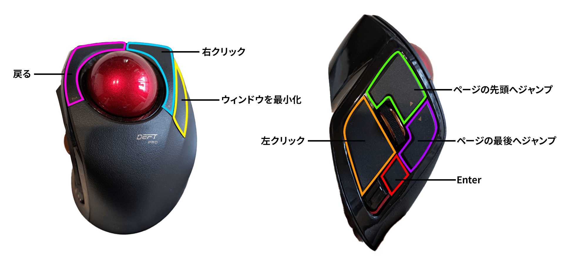 トラックボールマウスはボールを親指で操作するものと、人差し指で操作するものがあるのですが、こちらのDEFT PROは人差し指で操作するタイプです。親指タイプは親指がとても疲れるというレビューを見たため、私はこちらの人差し指タイプにしました。