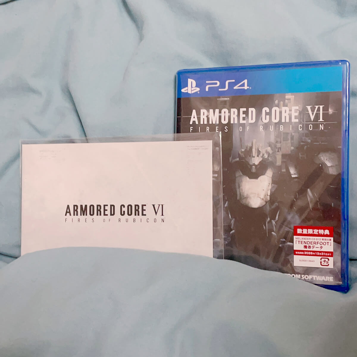 ゲームソフトはAmazonで予約しました。ゲームはパッケージ版派の私、覚悟を決めてゲーム内に登場するキャラクターのフィギュアが特典の「コレクターズエディション」(税込29,700円)を購入しようとしたのですが、どこも売り切れで泣く泣くAmazonでパッケージ版の「【PS4】ARMORED CORE Ⅵ FIRES OF RUBICON【数量限定特典】MELANDER C3 G13 特別仕様「TENDERFOOT」 同梱 【Amazon.co.jp限定】ポストカードセット付」(税込8,690円)を購入しました;;
