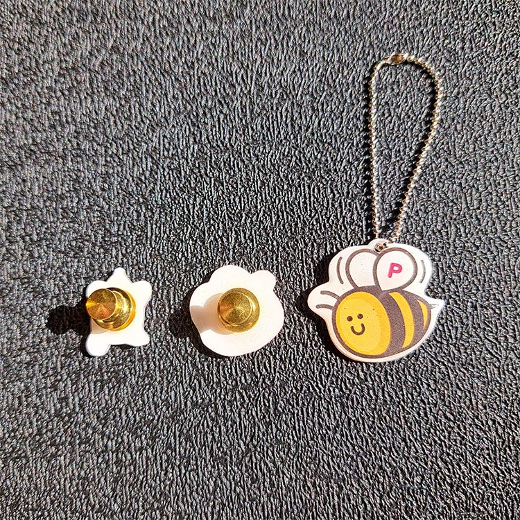 お好みでボールチェーンやピンバッジの金具をつければオリジナルキーホルダーやバッジの完成です^^