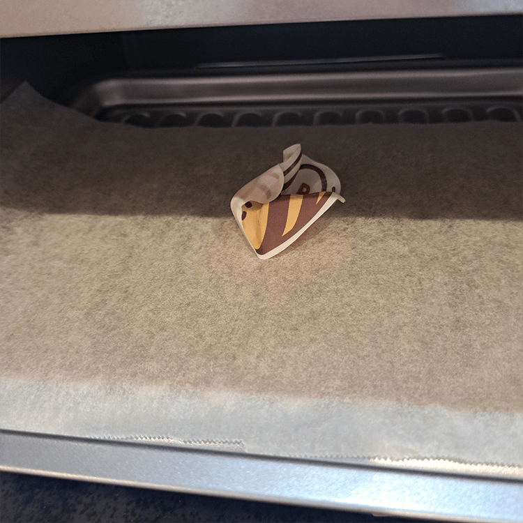 160℃で5分ほど予熱したトースターに切り抜いたプラ板をin!すぐにプラ板がグニャリとし始めますが安心してください。仕様です!