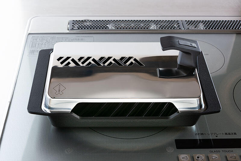 また、蓋の裏面にはステンレスの鏡面が使われていて、炭プレートから発生する遠赤外線を反射し、食材全体にムラなく熱を行き渡らせるんです。この組み合わせによって、中はふっくらジューシー、外は香ばしい皮パリの理想的な焼き上がりが家庭で楽しめるようになっています。