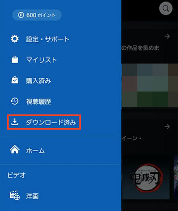 - メニュー内の「ダウンロード済み」アイコンをタップする