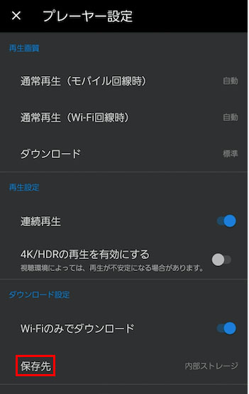 注意点として、保存先を変更できるのはAndroid端末のみとなります。