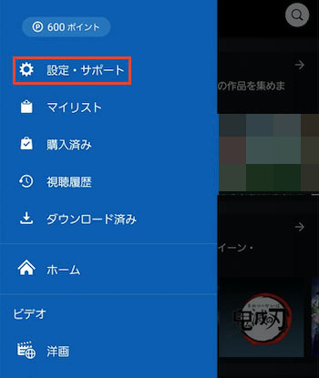 - U-NEXTアプリのトップページから「三 (メニュー)」をタップする
