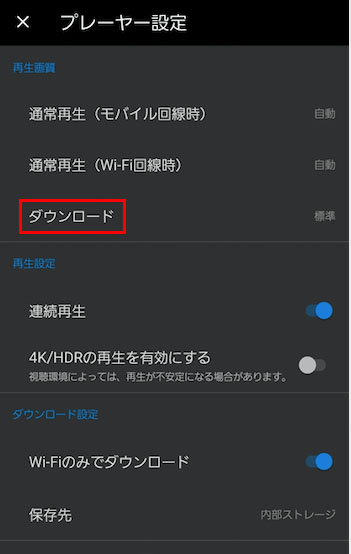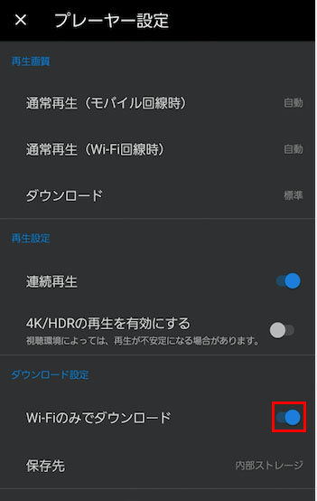 - ダウンロード設定の「Wi-fiのみでダウンロード」のトグルをONにする