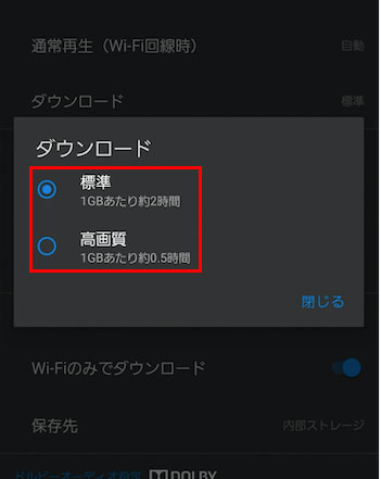 ダウンロードした作品の保存先は端末のストレージ内です。そのため端末のストレージ容量に空きがなければダウンロードできません。画質にもよりますが、一般的には120分の映画で1GB~2GBの容量が必要です。動画は容量が大きいため視聴後にこまめに削除していかないと、すぐに端末のストレージ容量の空きがなくなります。