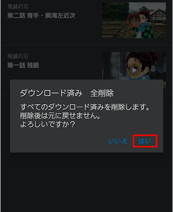 - 全ての動画を同時に削除したい場合は右上のアイコンを選択し「はい」をタップする
