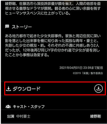 U-NEXTでダウンロードできるのは「ダウンロード」アイコンがついた作品のみです。ダウンロードできない時は、改めてダウンロード対象の作品かご確認ください。