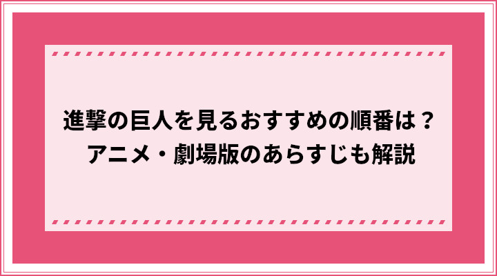 「進撃の巨人に興味があるけど、どの順番で見たら良いのだろう」