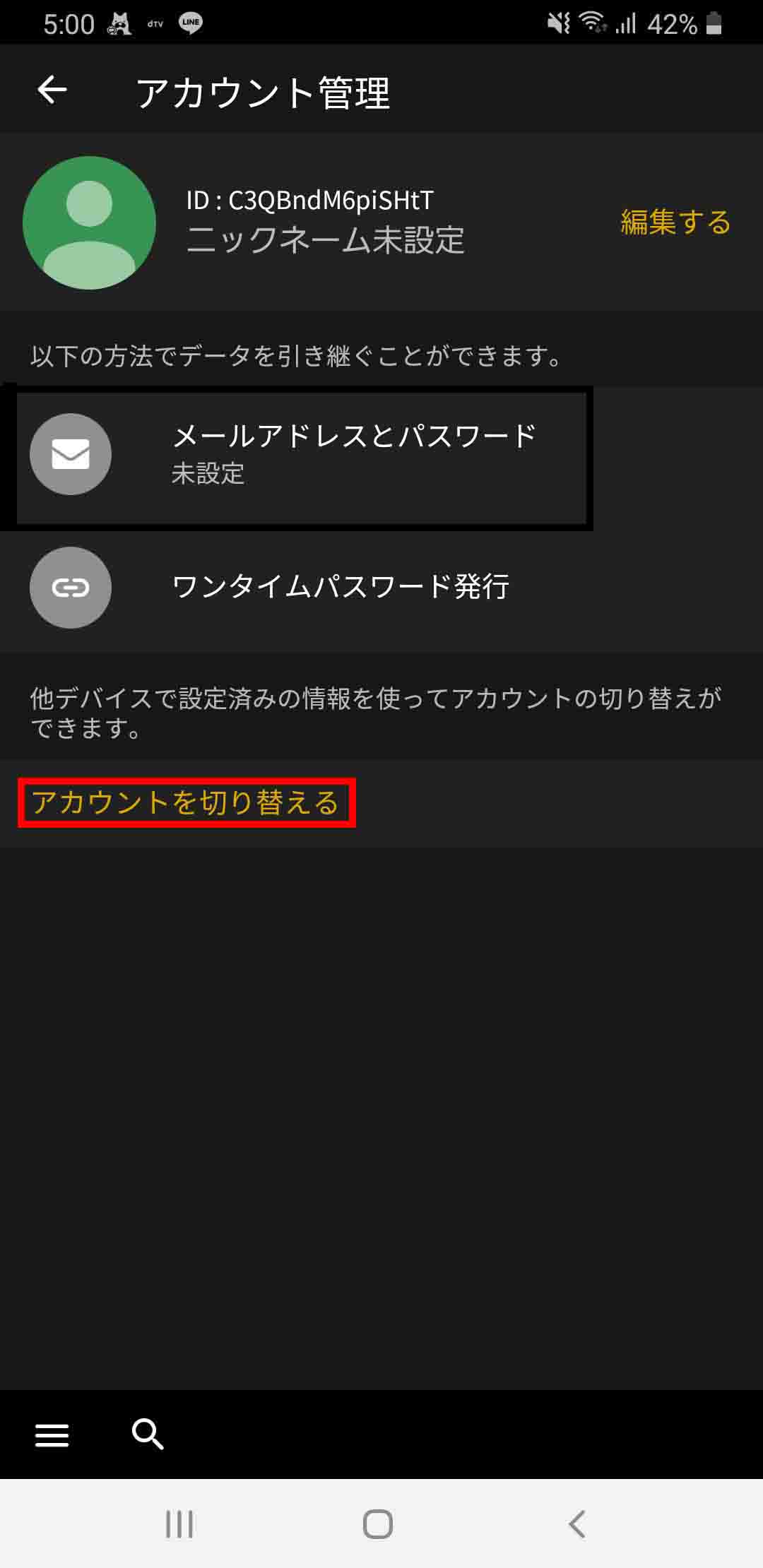 アカウントを切り替える手順はいくつかあります。例として、メールアドレスとパスワードを使う方法は以下の通りです。